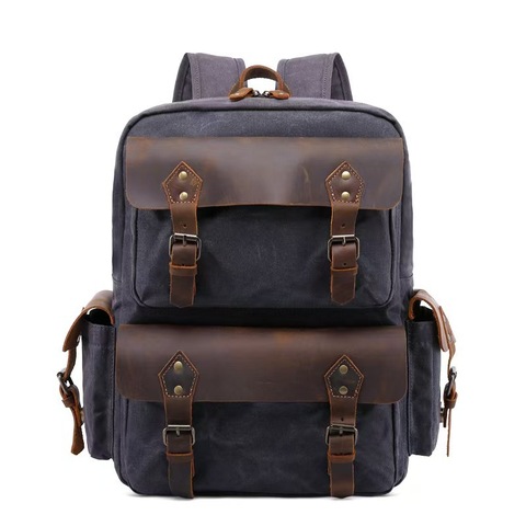 Avrupa amerikan Retro tarzı su geçirmez açık bilgisayar sırt çantası çılgın at çılgın at deri Polyester yağı balmumu kanvas çanta